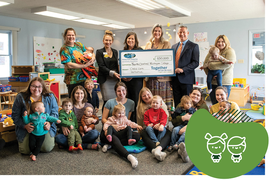 Child care is an essential part of our community’s fabric. Early care and education services, such as child care, are a necessary support for any community and any economy to thrive. Throughout the country, communities have struggled to support a system of accessible, high-quality, affordable early care and education services. To address the needs of Emmet County to have a sustainable child care system, North Central Michigan College has embarked on a multi-year effort to provide innovative solutions to our area’s child care shortage. We are pleased to support the NCMC Child Care Initiative which will provide an evidence-based plan for a sustainable child care system designed to meet the county’s needs now and into the future.